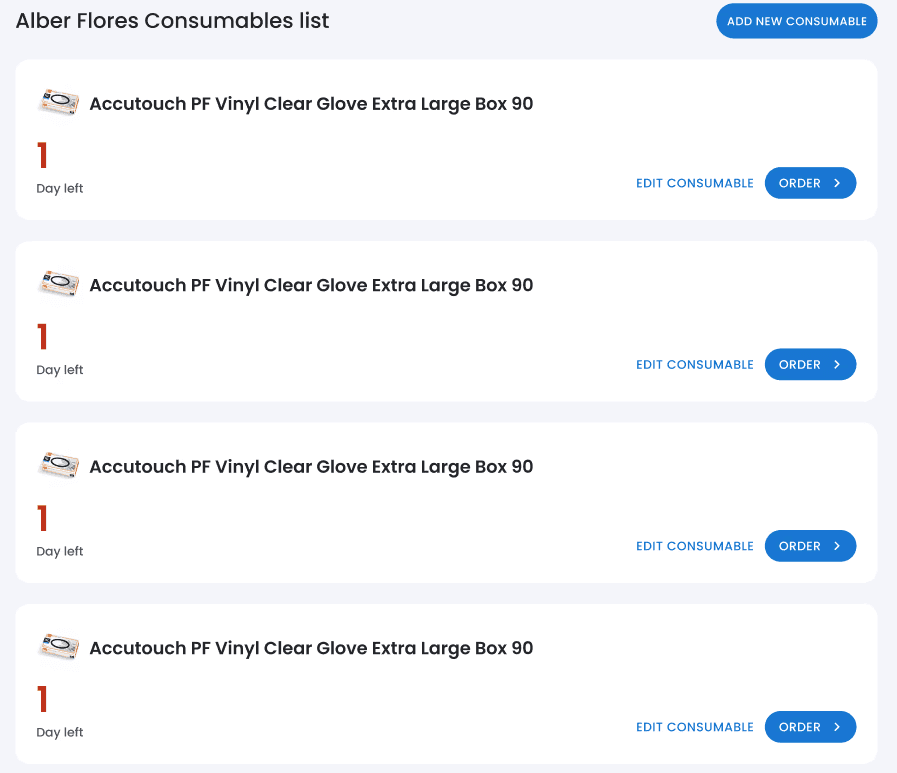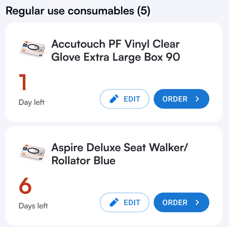 Add your consumables to your personalised list within the app and stay ahead of your stock levels. Never run low on essentials again with easy, real-time tracking.