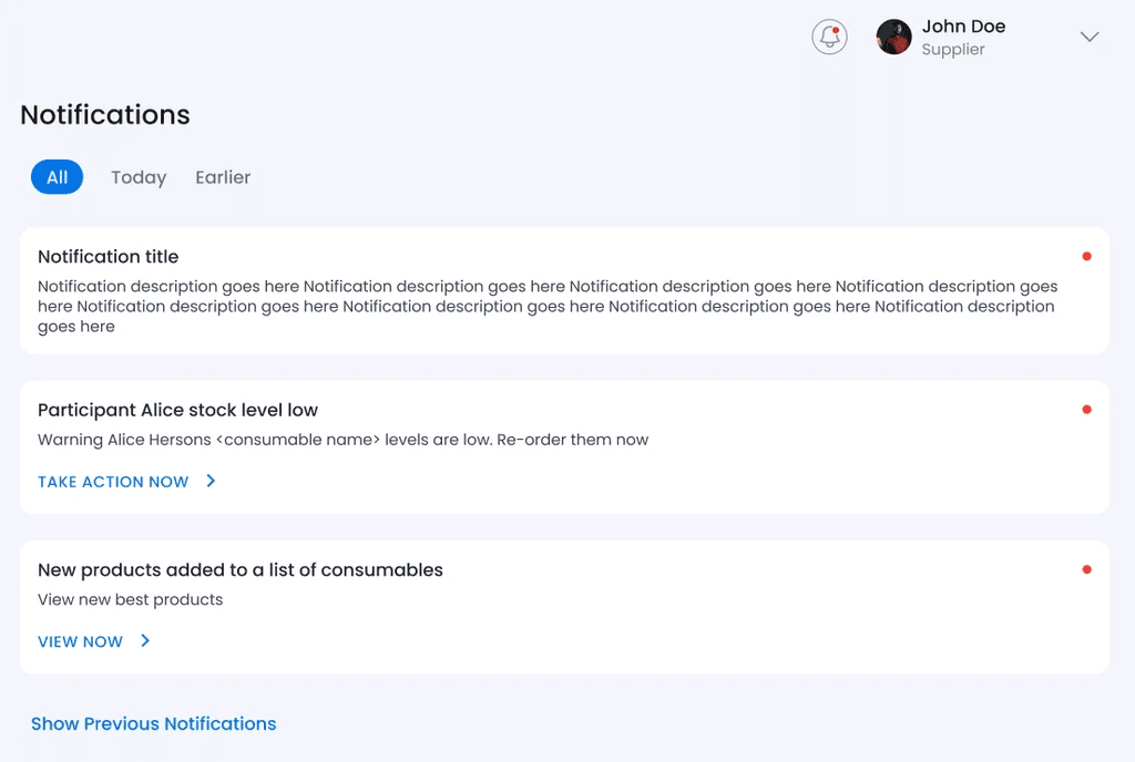 Your coordinators will receive instant notifications whenever there are updates to your consumables or orders, ensuring seamless communication.